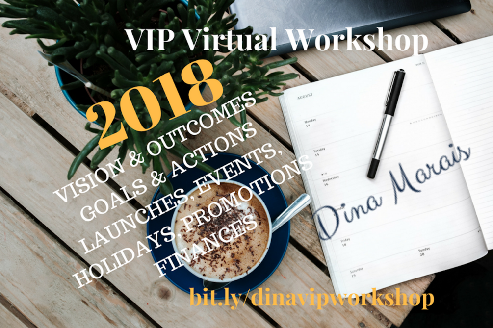This is a VIP Virtual Workshop with Dina, where she walks you through her You walk away with your Business Calendar Year Planned including your Finances as well as your Goals and Actions for the first quarter of the year! You get a Workbook with everything you need. Just show up, relax and enjoy!